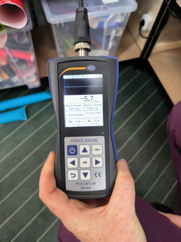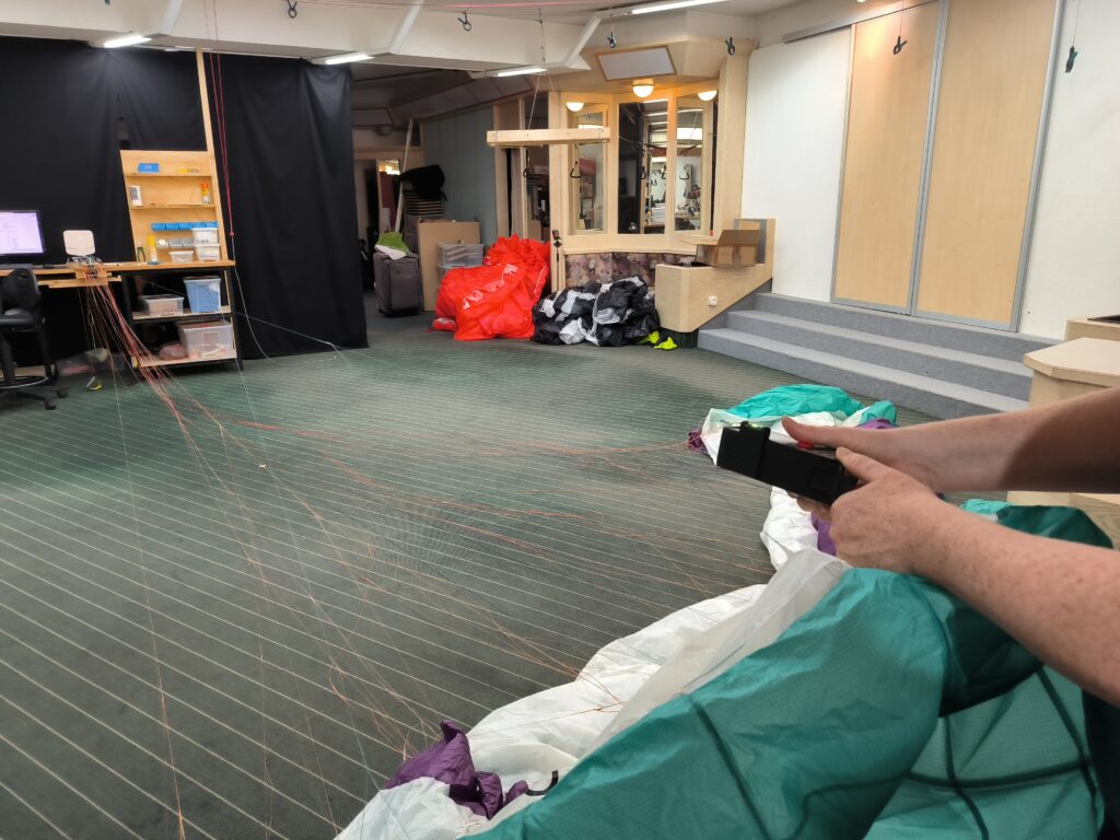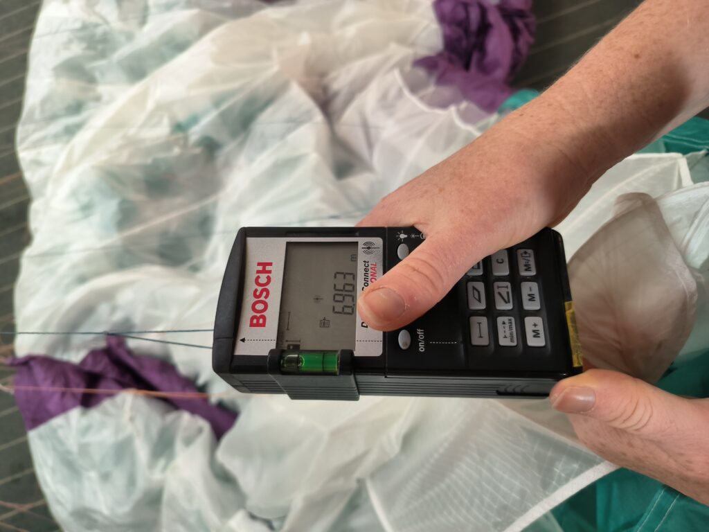Die Leinenvermessung wird mit einem Lasermessgerät durchgeführt, ganz ähnlich wie ich schon im Beitrag zur Leinenvermessung mit we-measure beschrieben habe. Die gemessenen Werte werden via Bluetooth in eine Excel-Datei übertragen. Wichtig ist es, auch die Tragegurte mitzuvermessen, da auch diese Längenänderungen, je nach Bauart, aufweisen können.