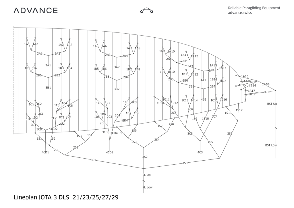 Da die Fangleinen aus Aramid bestehen, die bekanntlich sehr längenstabil sind, fertigt sie die neue Leine in genau der gleichen Länge. Die Trimmung kann nach ein paar Flugstunden nach der unten vorgestellten Methode selbst überprüft werden, aber es ist davon auszugehen, dass die Länge der Fangleine stabil bleibt.
