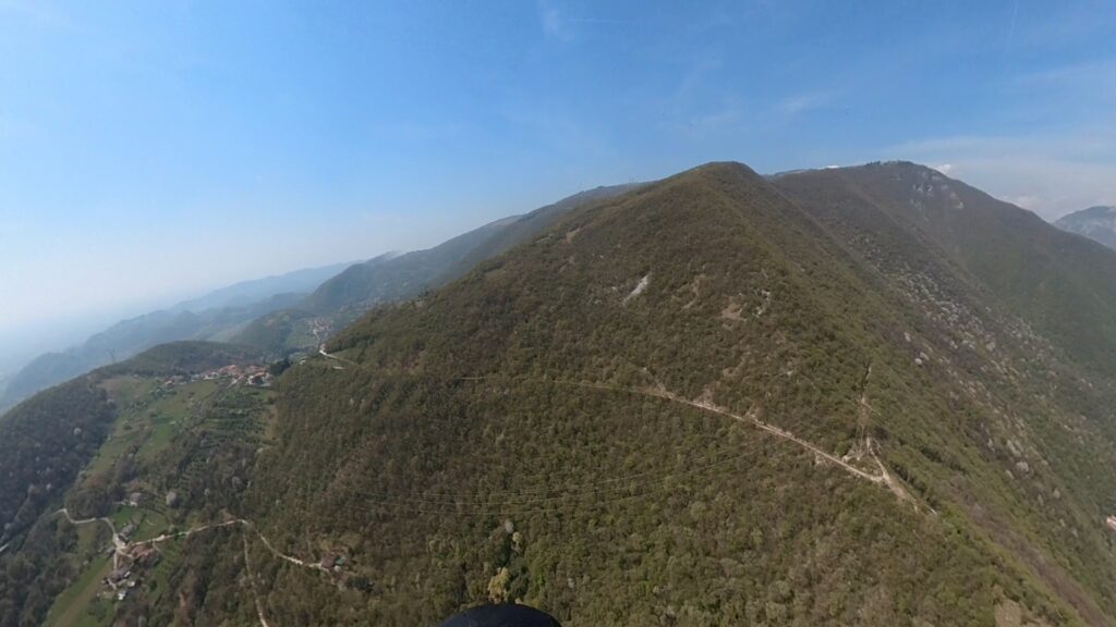The photo shows a high-voltage overhead power line west of the Brenta. This can certainly make it difficult to find thermals after crossing the valley. However, it is still clearly visible in front of the green forest.