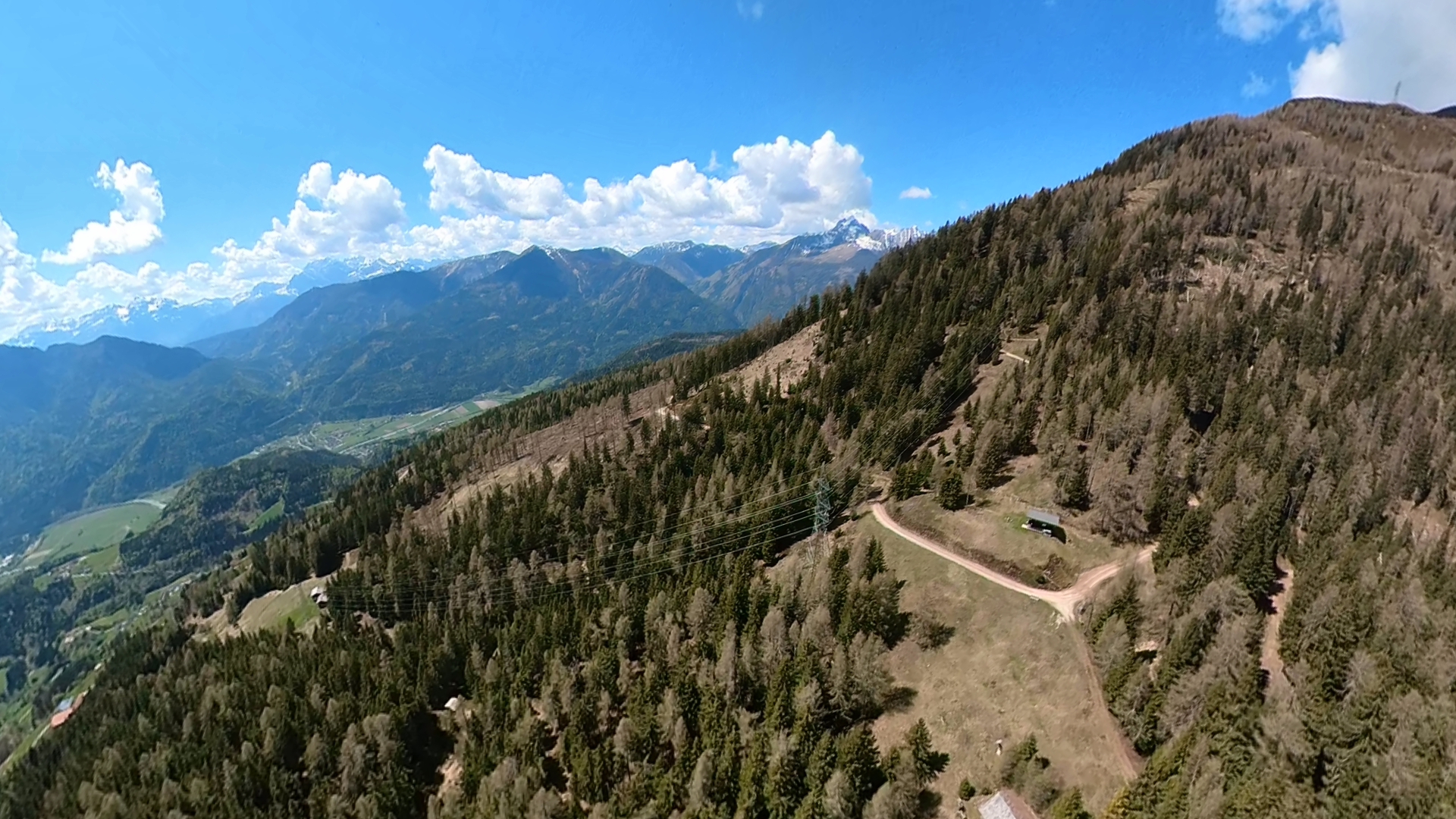 The photo shows a high-voltage overhead power line west of the Brenta. This can certainly make it difficult to find thermals after crossing the valley. However, it is still clearly visible in front of the green forest.