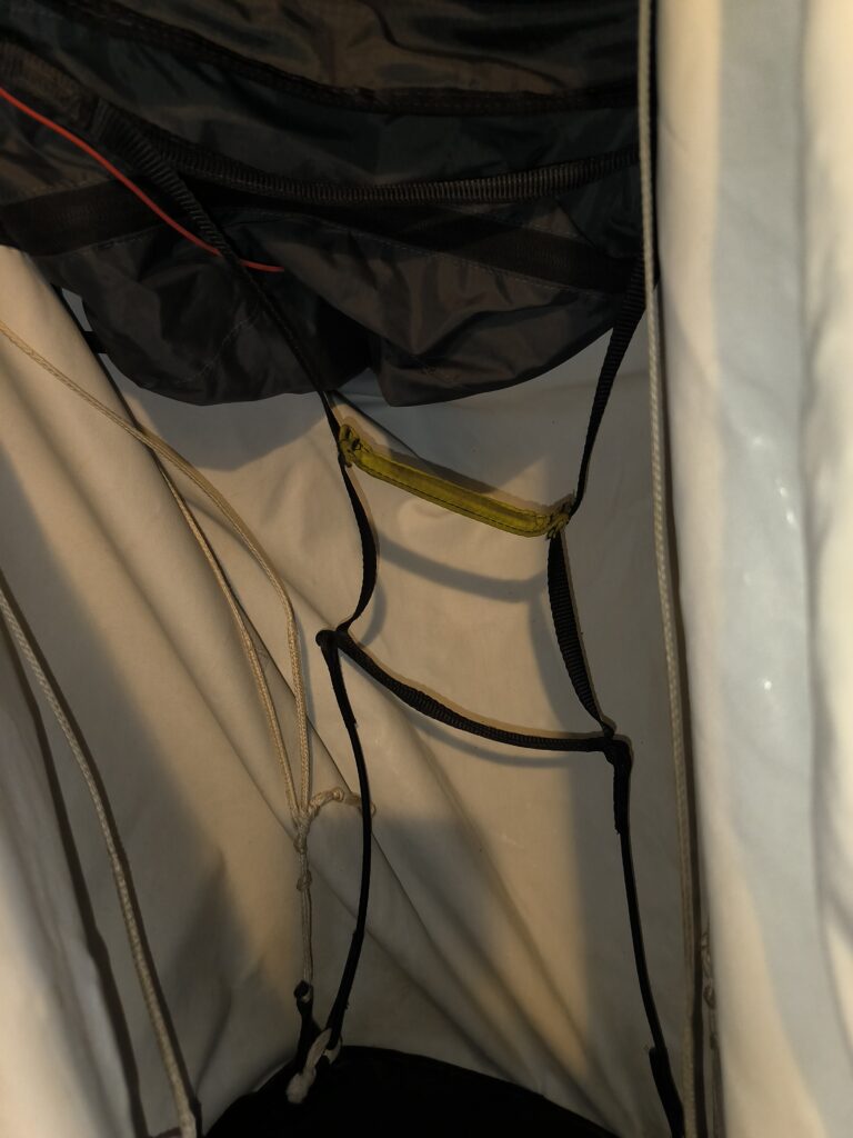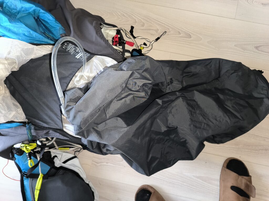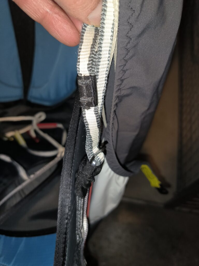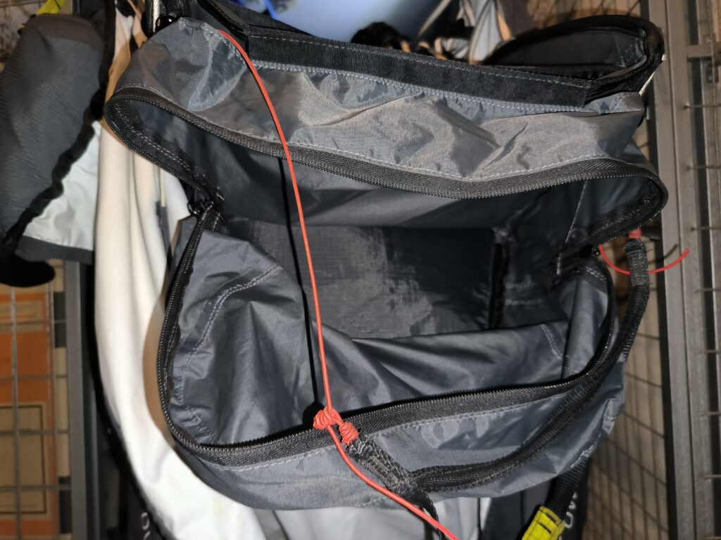 There is little storage space available for things that need to be available in flight, the side pockets have a depth of 23 cm. Why can’t the side pockets be longer? There would be room on the leg bag. There is a small mesh pocket underneath the cockpit, in my opinion too little storage space for the flight. In contrast, there is plenty of other storage space. The storage compartments consist of the tail pocket (photo 3), the bow pocket, the net pocket (under the cockpit) and the pocket in front of the protector (photo 2). This should provide enough space for a bivouac adventure.